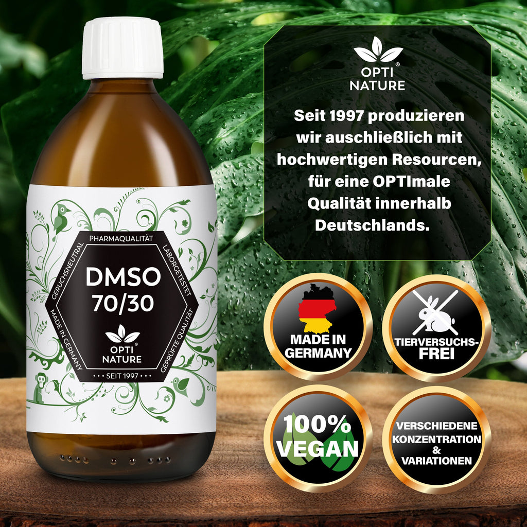DMSO ist ein organisches Lösungsmittel. Vorsicht im Kontakt mit anderen Materialien. Nicht in die Augen bringen!