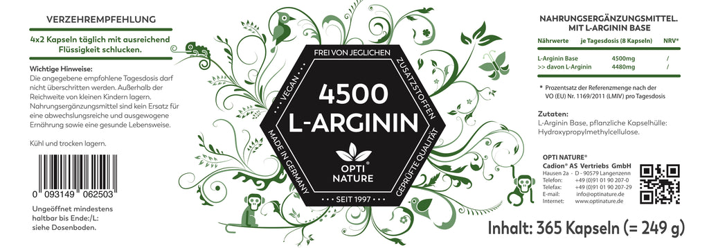 Zutaten: L-Arginin Base, pflanzliche Kapselhülle: Hydroxypropylmethylcellulose.