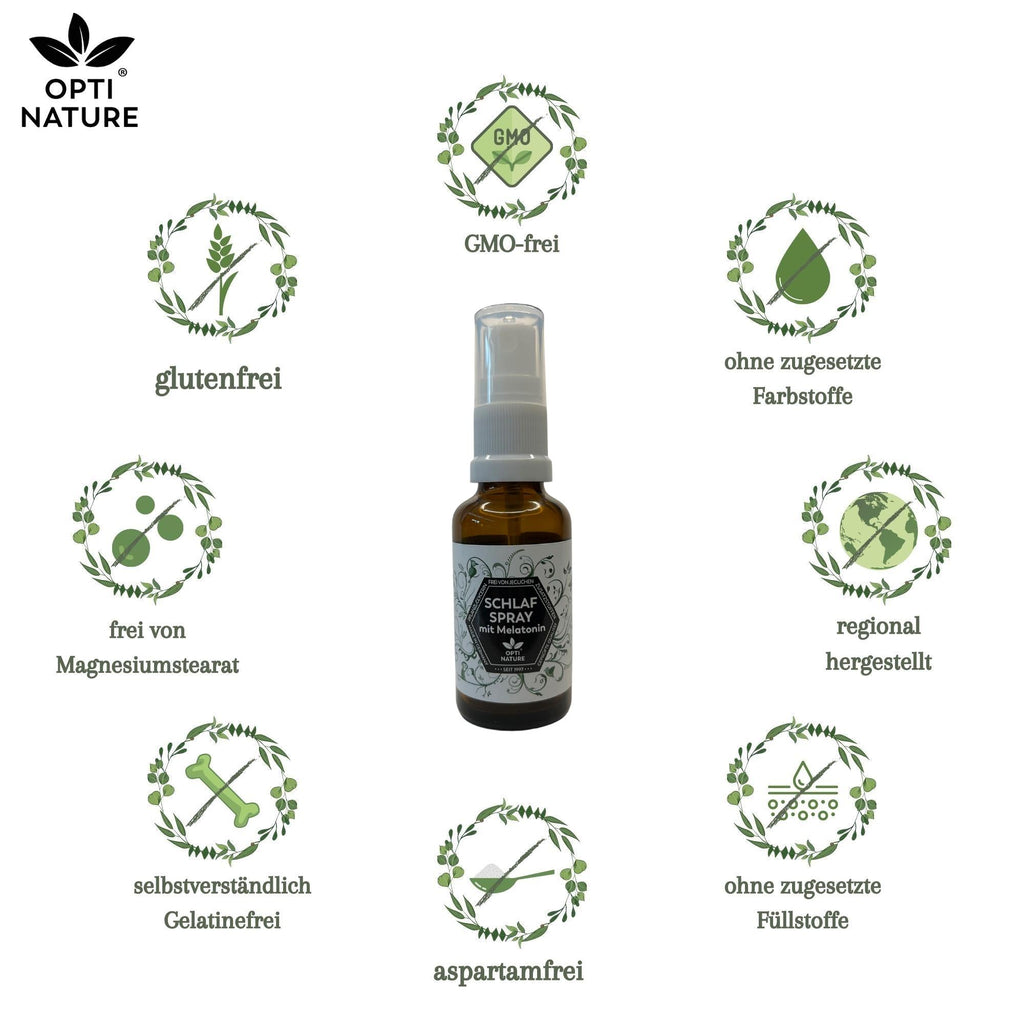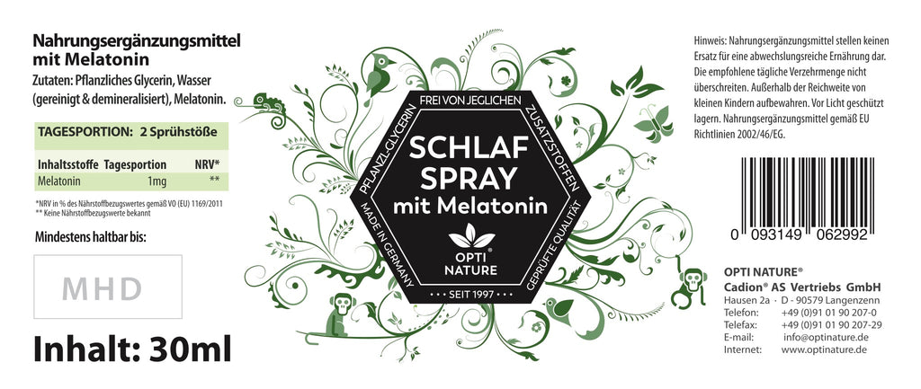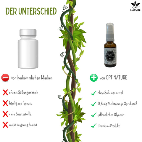 Zutaten: Pflanzliches Glycerin, Wasser (gereinigt & demineralisiert), Melatonin.