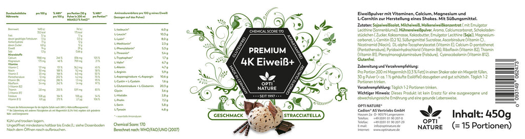 - Hochwertiges Eiweiß (Chemical Score 170 berechnet nach WHO/FAO/UNO (2007)
